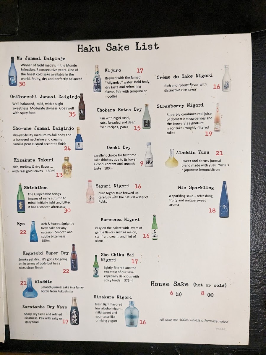 “ Haku Sushi is located in the heart of Santa Rosa. Being new to the area I am always on the hunt for a sushi spot, lucky I came across Haku. Parking can be a bit tricky on a busy day since street parking is always crazy but on not busy days it’s a breeze and tons of open meter parking available, they also have a parking garage right across the street if needed. Service was great, the staff that helped me was very welcoming and gave me time to over look the menu and patiently waited till I was ready. The restaurant looked busy and I noticed tons of people also picking up orders to go. I finally placed my order and also got it to go so I can enjoy at home. Waited about 15/20 min and my food was ready. I did noticed not only is it a sushi restaurant they also have some type of Korean menu as well, so I feel like they offer more than just sushi but I didn’t ask or explore to much more. Just make sure you come hungry, they do have a good selection to choose from. I ordered 3 rolls and some veggie tempura, I would say the prices are a bit higher than what I’m used to paying back home but I know inflation is real and everything in Sonoma County seems to cost more. I will say, the rolls were delish! They were worth the price, The quality and quantity were outstanding. If you find yourself looking for sushi and are in the area, I highly recommend you stop by. FYI: TOGO 20% off on cash payment. DINE IN 10% OFF on cash payment Enjoy! ”